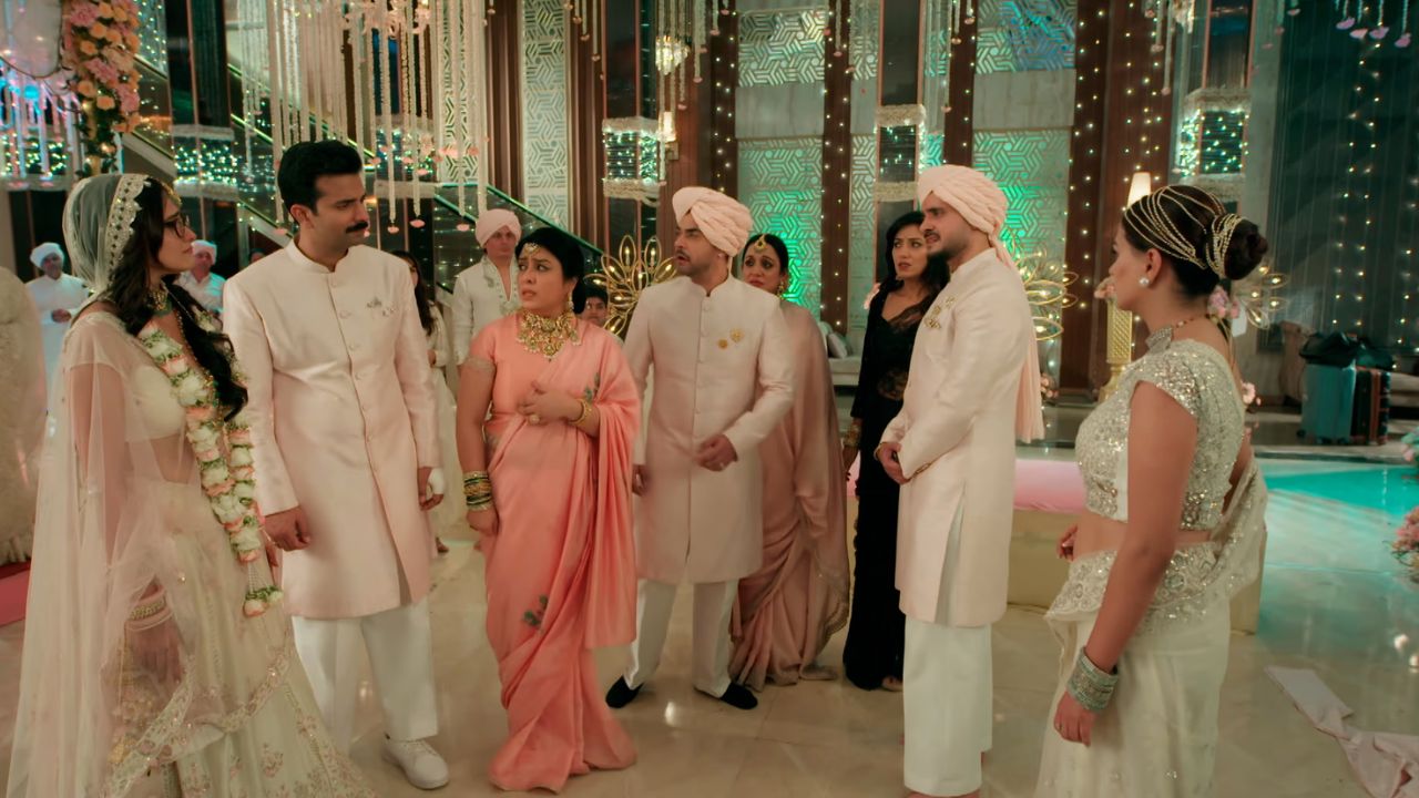 Vishaka continues creating drama. Dhairya asks Vikrant to think sensibly—this was a private video, so who recorded it, and why was it played at his wedding? He insists that Vikrant consider who wants to stop the wedding and what their intentions are. Meanwhile, Aishwarya assumes that Mannat has gone to bring evidence, so she sneaks out to kill Dadi.